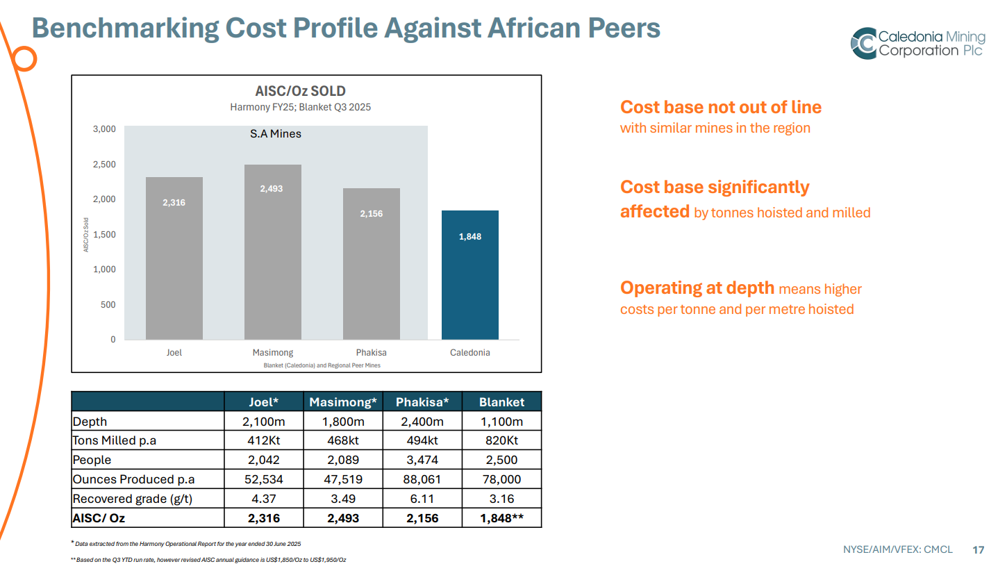 Caledonia increased its 2025 AISC guidance from $1,690-$1,790/oz to $1,850-$1,950/oz, indicating costs will remain higher.