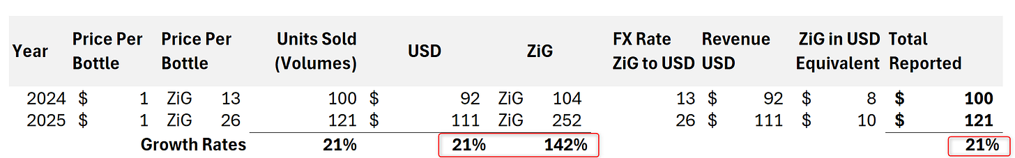 For example, assuming that prices stayed the same and the revenue split remained at 92:8, if you separated the USD revenue and the ZiG revenue, it would potentially look like this: