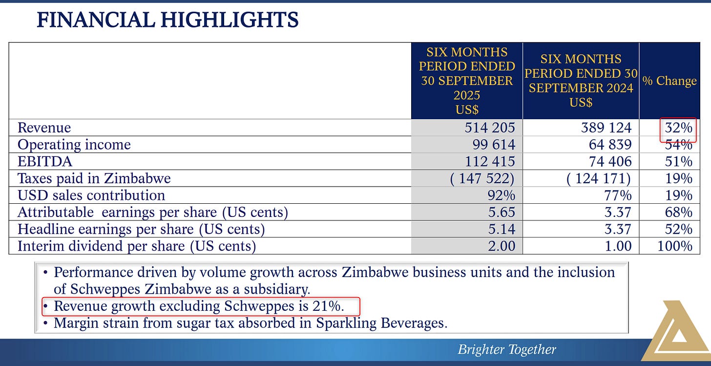 Last week, the Big 3—Delta, Econet, and Innscor—all posted very strong results that showed big increases in revenue and volumes.