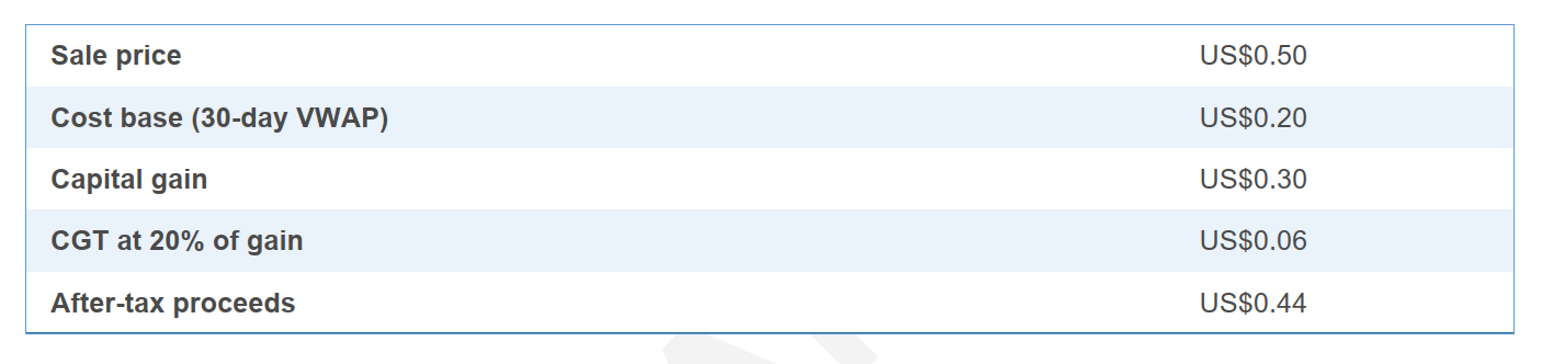 Using our 30-day VWAP of US$0.20 as our assumed cost base: