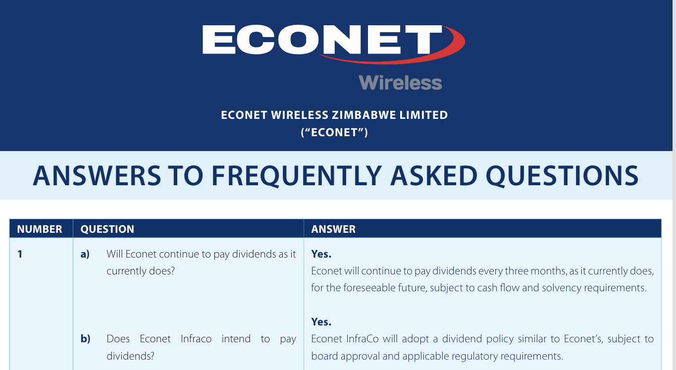 It is also worth noting that Econet recently published an FAQ confirming they intend to continue paying dividends after delisting, which provides some additional comfort on this point.