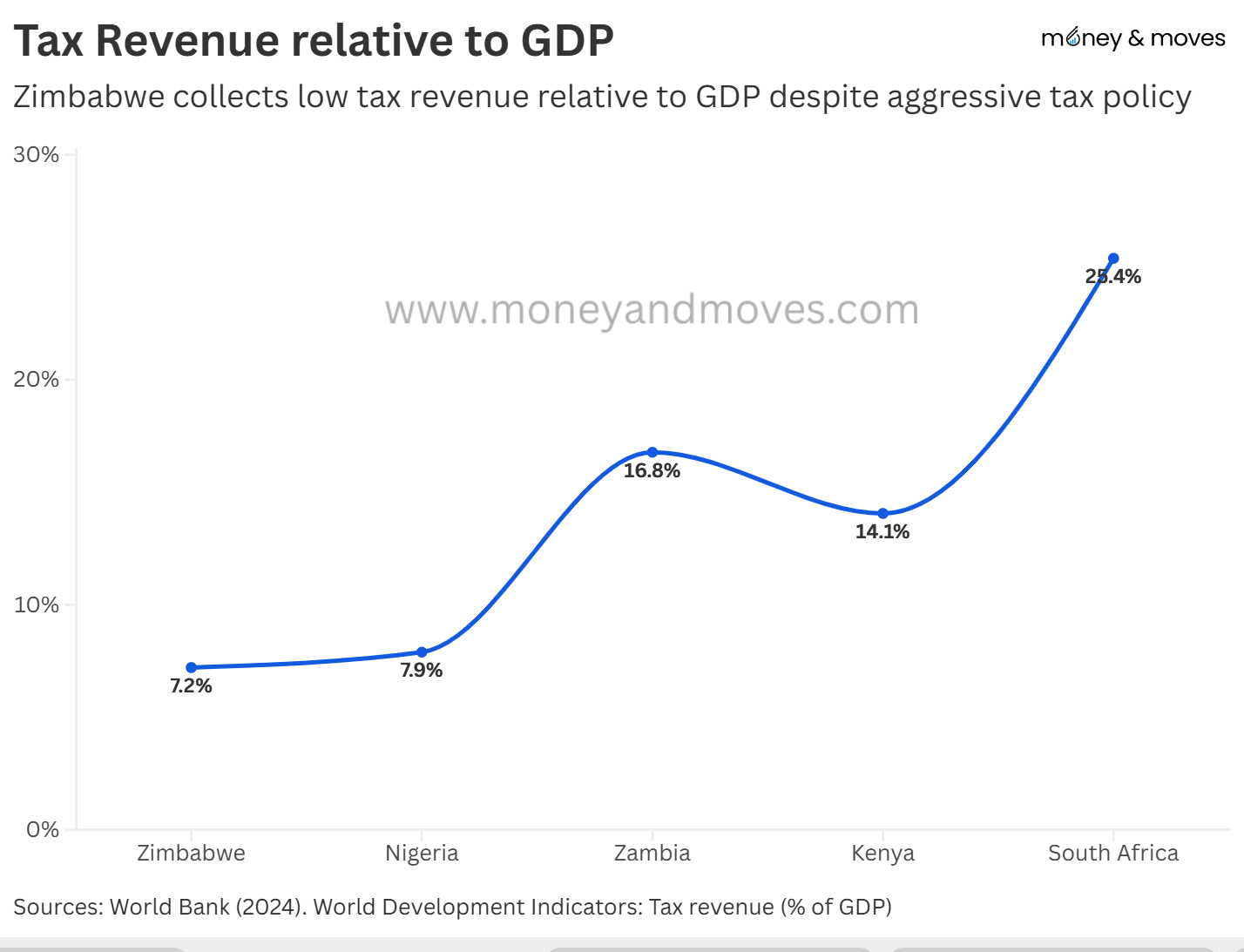 As you can see, Zimbabwe sits well below its African peers. In fact, the African Development Bank has long-term targets of 27.2% for African countries.