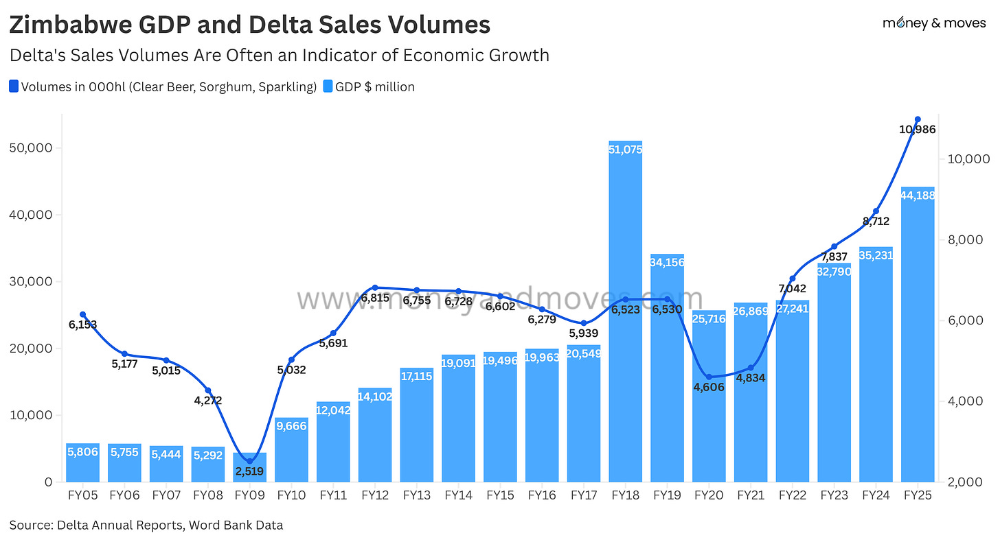 What 20 years of Delta sales volumes reveal about Zimbabwe’s economy — and how gold driving growth.