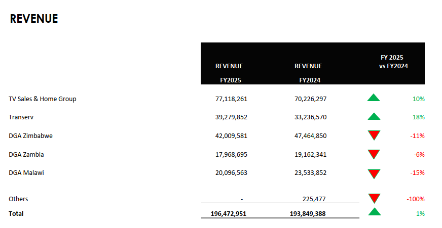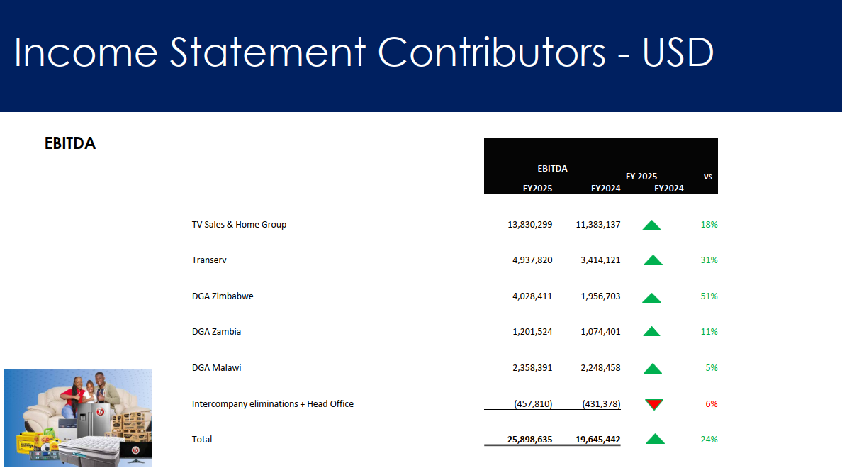 The drop in revenue in the DGA businesses was not operational but due to an accounting change brought about by restructuring one of its businesses. For DGA Zimbabwe, when you adjust for these accounting changes, revenue actually grew 44%, which is really strong.