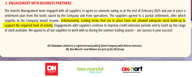 OK Zimbabwe, once the country’s largest retailer, continues to struggle. Last week’s trading update confirmed that “revenue generation remains below break-even levels.”