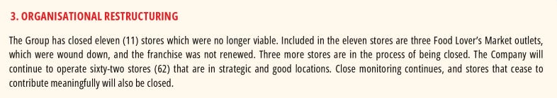 Given these dynamics, sustaining 62 stores appears increasingly challenging. The only realistic option may be cutting another 20+ locations. It’s better to operate 30 well-stocked stores than 60 stores with limited inventory.