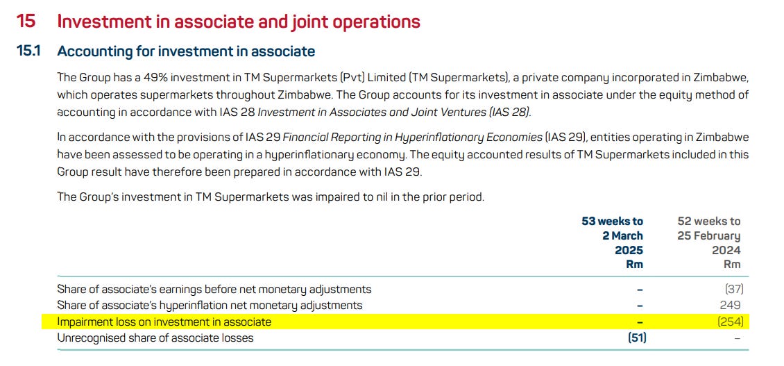 “For those wondering how these moves will impact TM Pick n Pay in Zimbabwe, I don’t think they will change much. The operation in Zimbabwe is still 51% owned by Meikles Limited. Pick n Pay has, however, written off its investment in TM Pick n Pay to Zero.