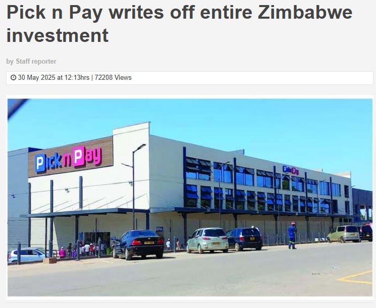On May 30, a story made headlines: “Pick n Pay writes off entire Zimbabwe investment.”