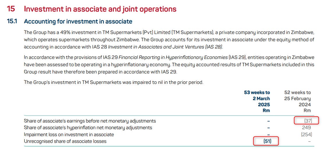 So, if you wanted to make a like-for-like comparison of TM Pick n Pay’s performance, the numbers to have looked at were the share of losses, which increased from R37 million in 2024 to R51 million in 2025.