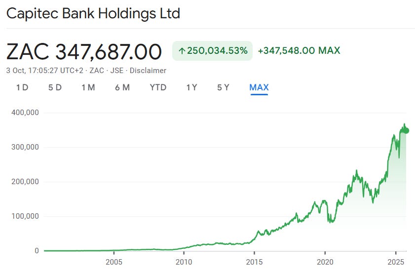 For context, if you had invested R1,000 when it went public, you would have over R2 million today.
