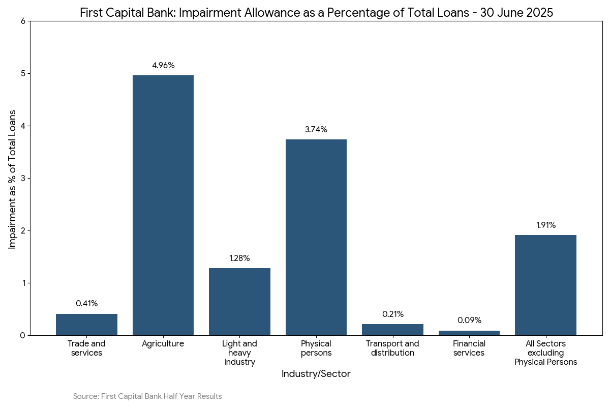 The following chart shows First Capital Bank’s impairment allowance as a percentage of the total balance calculated from its latest results.